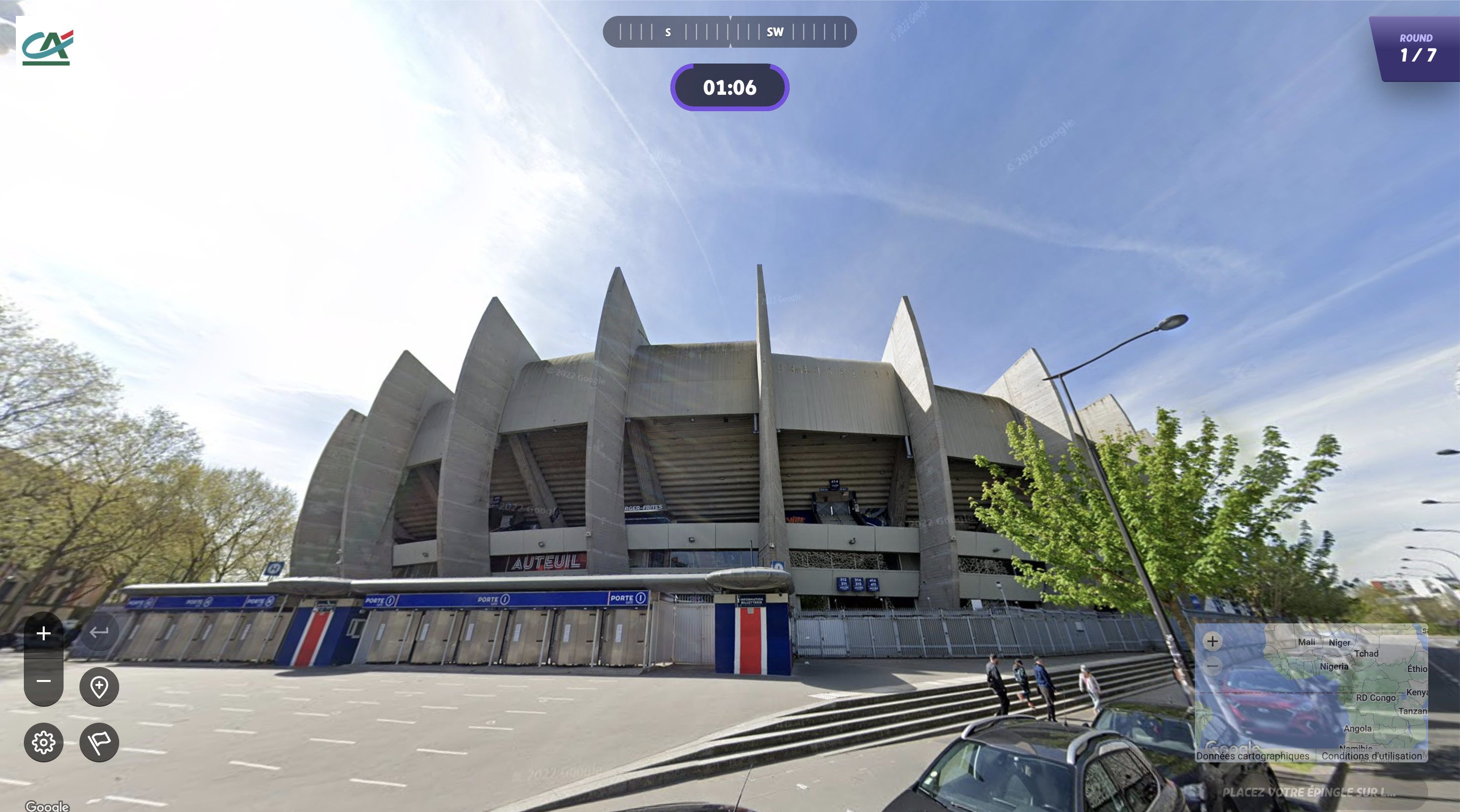 Nous avons créé le premier mode de jeu GeoGuessr dédié à la Coupe de France Crédit Agricole, entièrement centré sur les stades de la compétition. Des enceintes mythiques aux terrains de villages, les joueurs sont plongés dans des images issues de Google Maps et doivent localiser chaque stade avec précision. Plus le repérage est fin et rapide, plus le score est élevé.